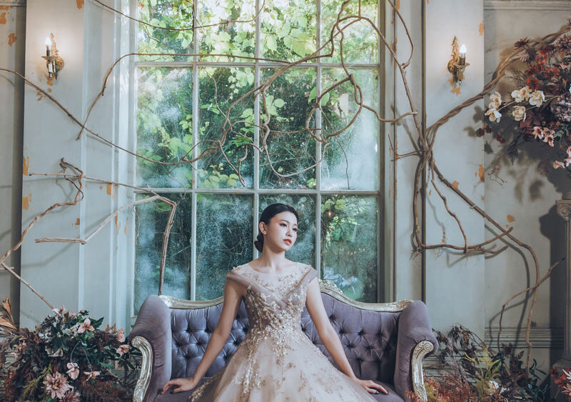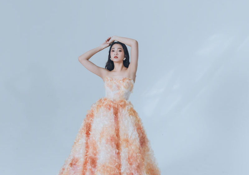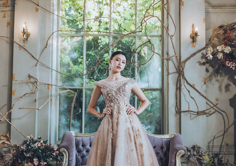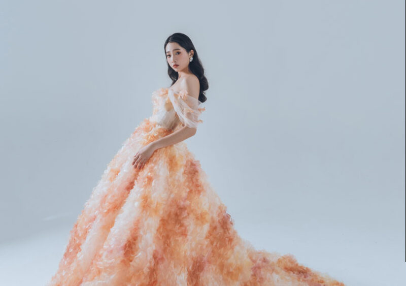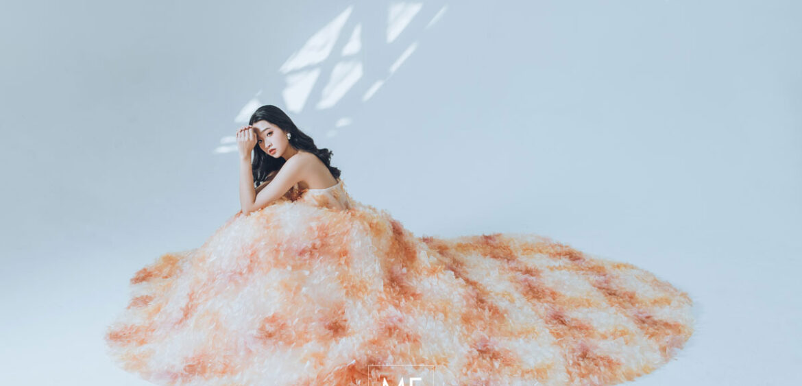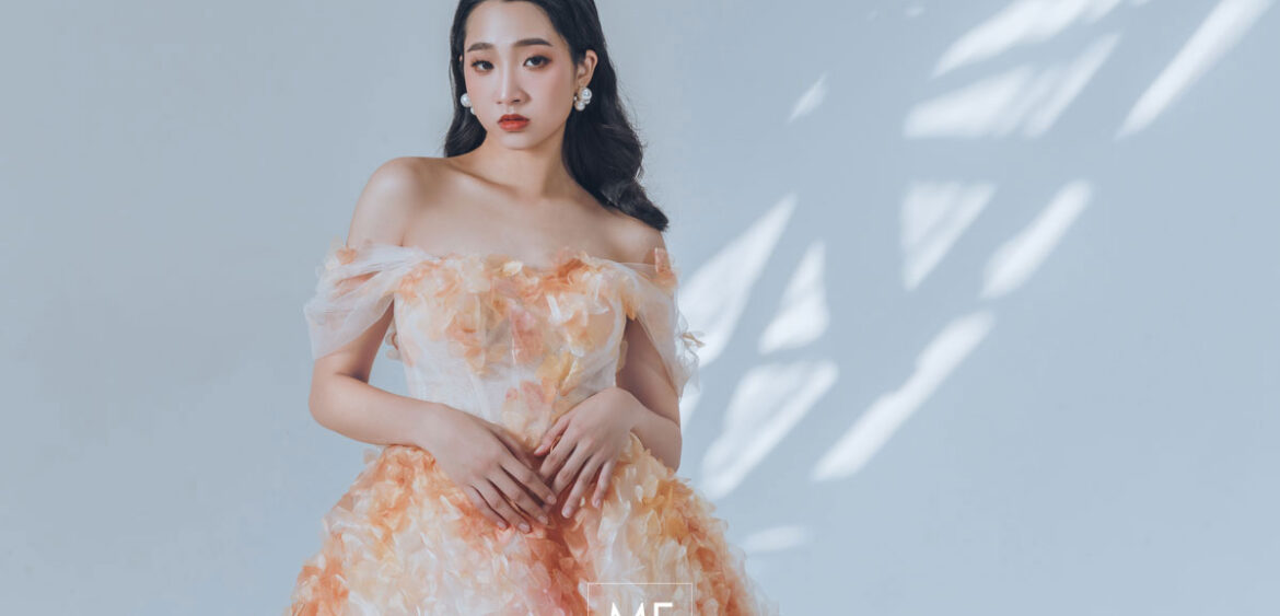 MF WEDDING 晚禮服系列 | 橘白漸層立體花瓣禮服