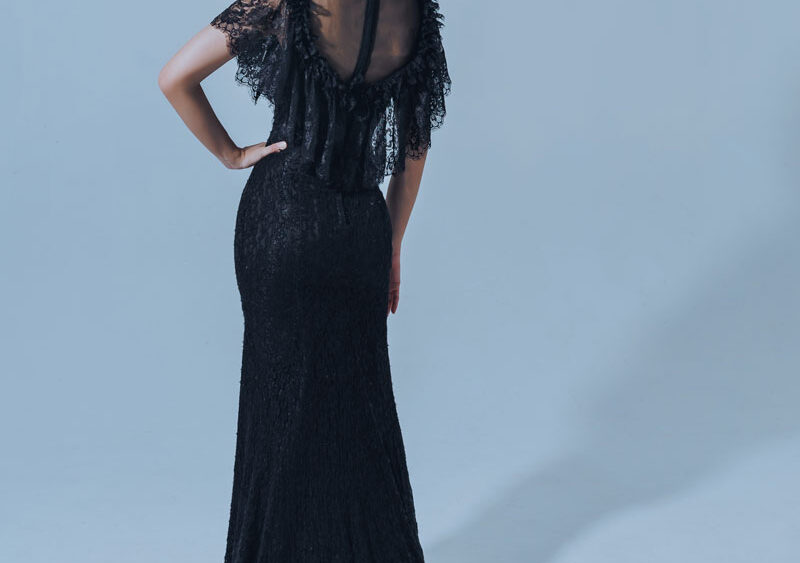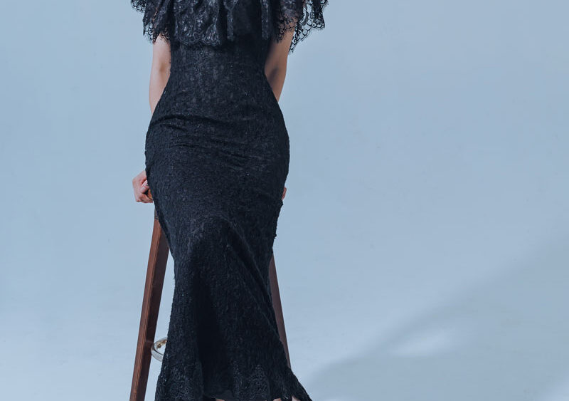 MF WEDDING 晚禮服系列 | 黑蕾絲透膚繞頸立肩魚尾