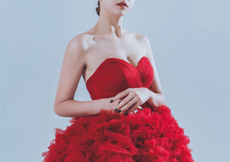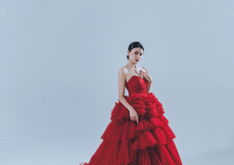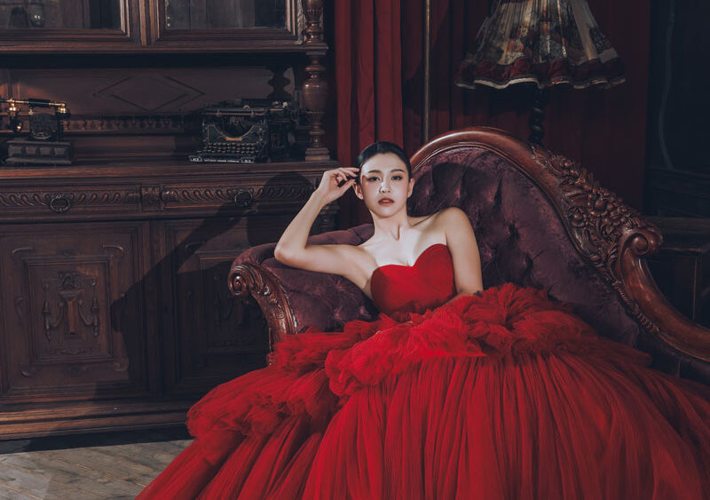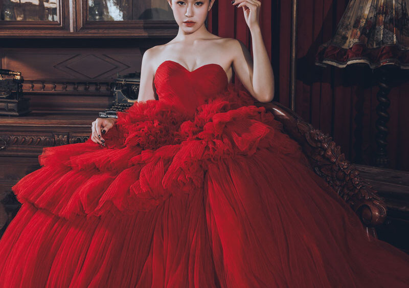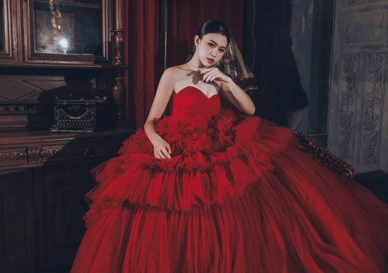 MF WEDDING 晚禮服系列 | 桃心領蛋糕紅裙