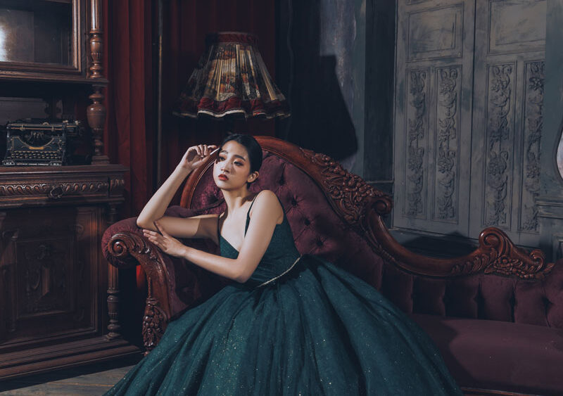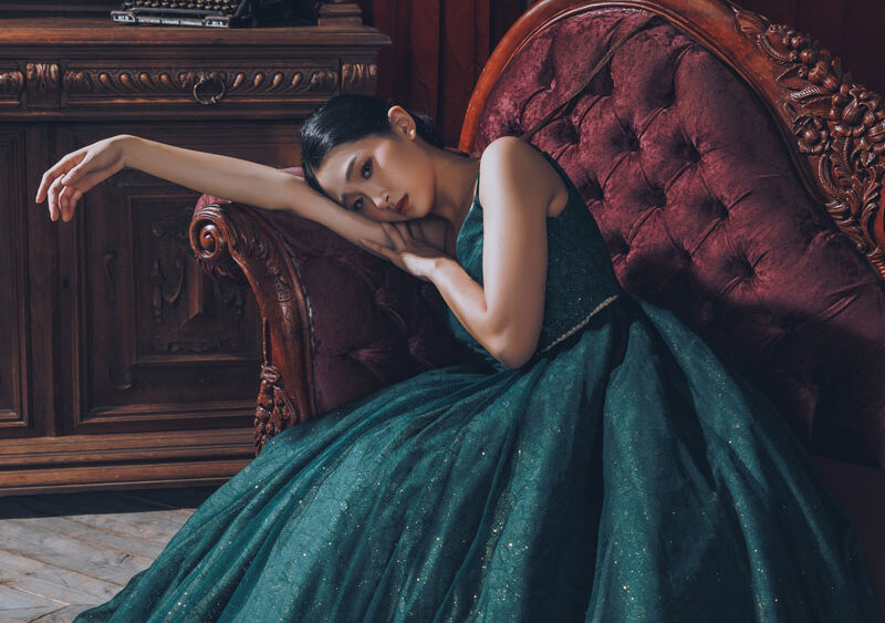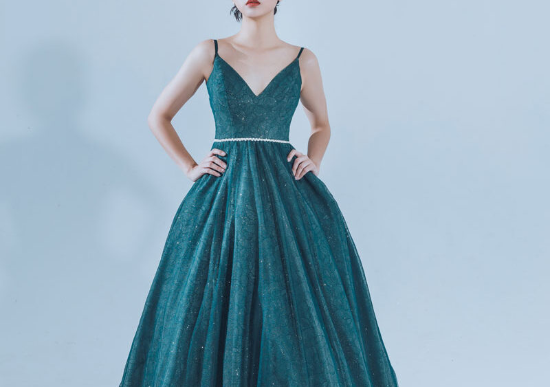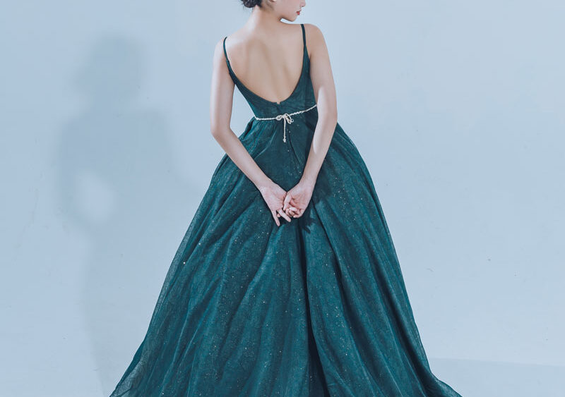 MF WEDDING 晚禮服系列 | 細肩帶孔雀石綠禮服