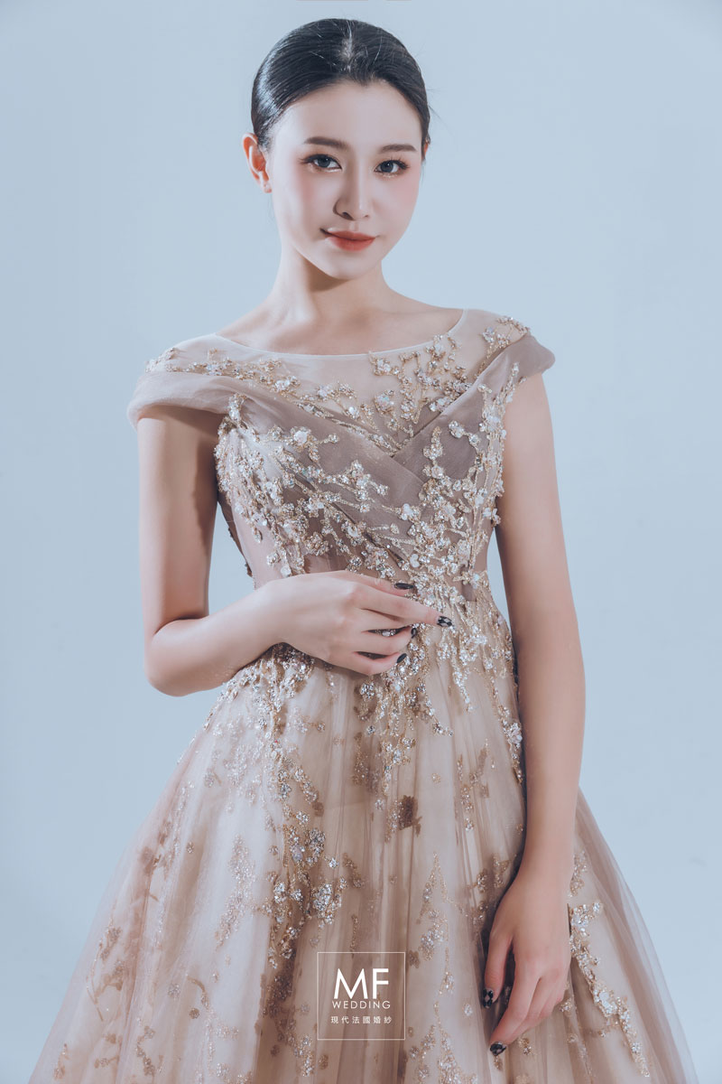 柔和的裸粉色調散佈著閃亮的金色刺繡,營造出精緻而夢幻的氛圍。 繁複花卉刺繡如同置身於童話中的花園,充滿詩意與柔情。 MF WEDDING 精緻白紗系列 | 蕾絲俏語兩件式婚紗 MF WEDDING 精緻白紗系列 | 蕾絲俏語兩件式婚紗 Read more in 品牌禮服 0 MF WEDDING 精緻白紗系列 | 閃耀葉紋婚紗 MF WEDDING 精緻白紗系列 | 閃耀葉紋婚紗 Read more in 品牌禮服 0