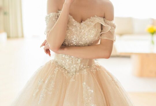 當光線灑落,立體的泡泡袖在肌膚間若隱若現,將浪漫與典雅輕輕包裹。