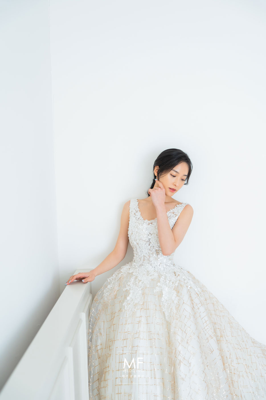 MF WEDDING 精緻白紗系列 | 白金立體花卉刺繡蓬裙