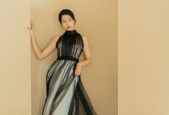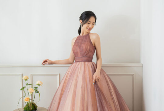 隨步伐輕盈展開的紗裙,如晨曦光影般流動,營造柔美又華麗的氛圍。